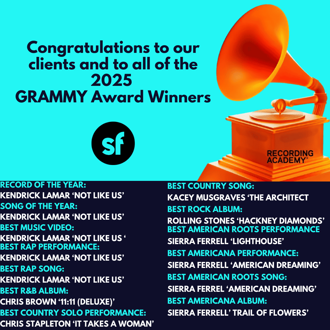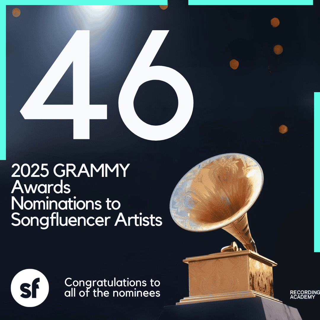 Congratulations to all of the 2025 GRAMMY Award Nominees, including 46 artists we’ve worked with here at Songfluencer this year! Check out our past campaign case studies here, and see the full list of nominees on GRAMMY.com